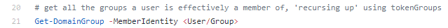 Let’s start with the Get-DomainGroup command, which grabs members of a group you specify, recursing upwards: