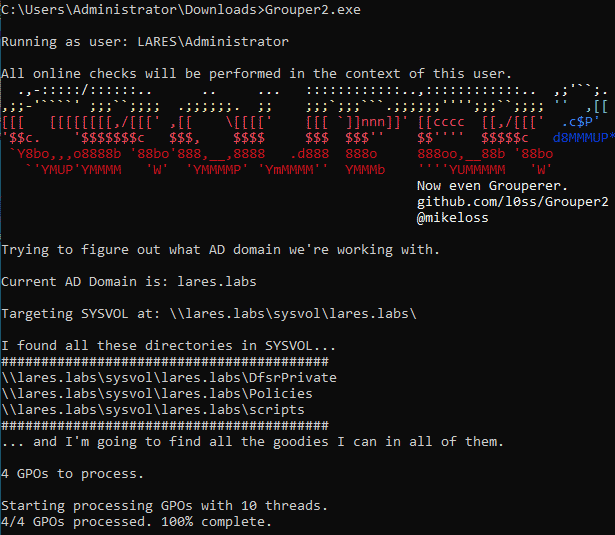 Grouper2 is a tool written by Mike Loss and is designed to find vulnerabilities and misconfigurations in Active Directory Group Policy.