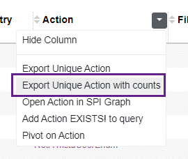 We can then click on the “Action” column and export the RPC calls made into a list showing how many times each call occurred:
