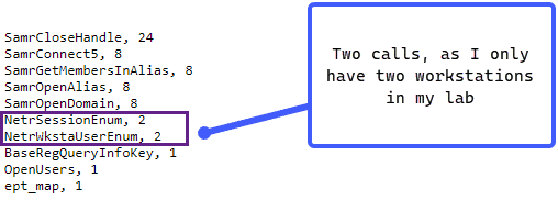 With our results presented this way, we can gain a deeper understanding of what occurred under the hood of our SharpHound execution. We can see two calls to NetrSessionEnum and NetrWsktaUserEnum – this makes sense as I only had two workstations in my little lab and we can see that SharpHound is enumerating the workstations on the domain as well as gathering session information for those workstations:
