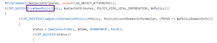 And uses LsarOpenPolicy2 as well: